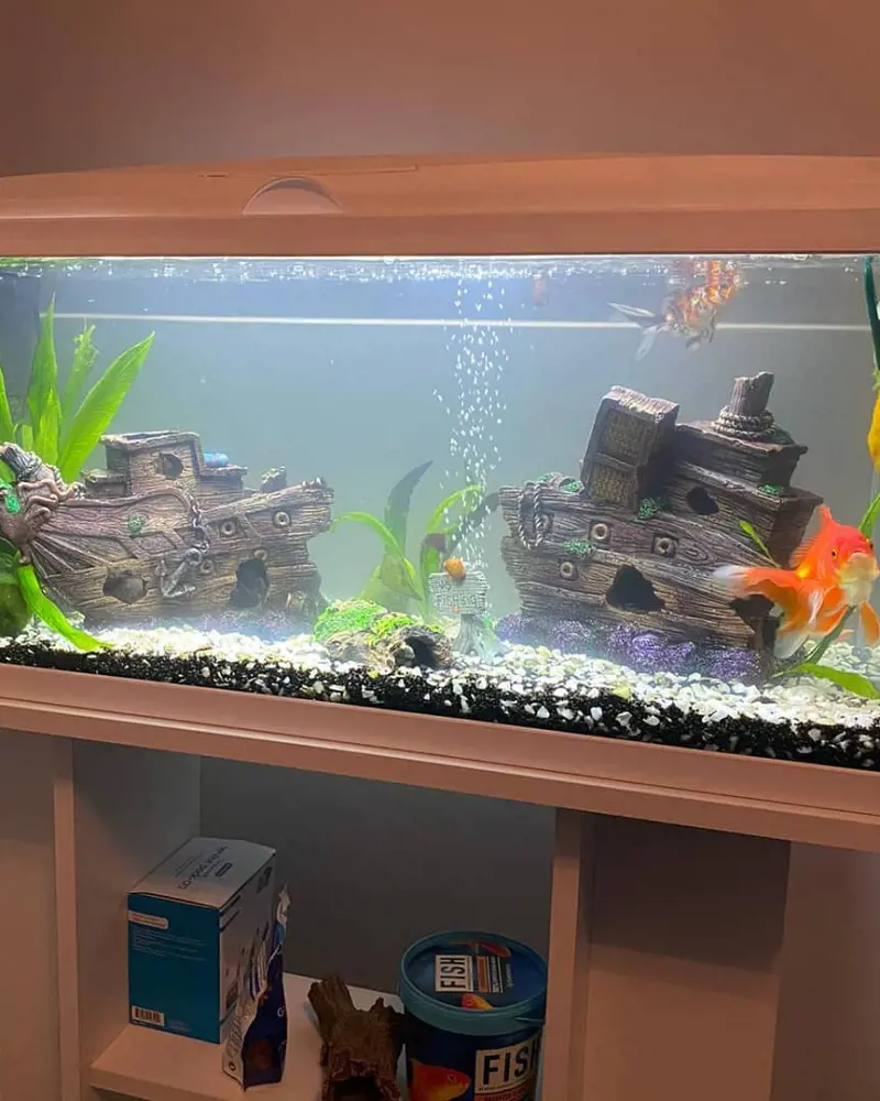 Arrange these items creatively to create a maritime atmosphere, and consider adding subtle blue LED lighting to enhance the underwater ambiance. It provides an engaging environment for your fish to explore, evoking a sense of seafaring adventure.