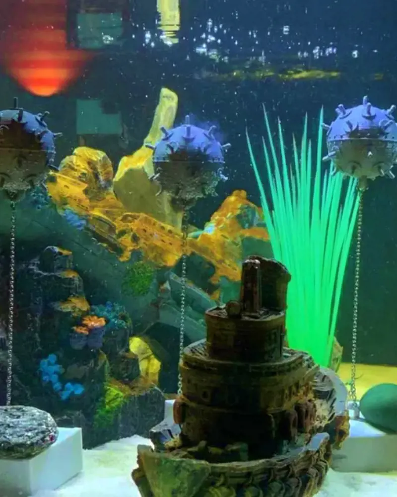 You can make the aquarium an amazing underwater world with cool decorations. Imagine a tiny sunken city or a magical forest filled with glowing jellyfish.
