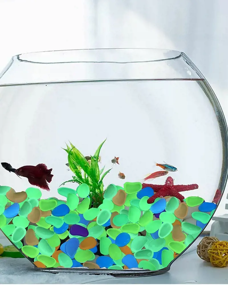 Strategically place these glowin peebles around the tank floor or use them to accentuate decor elements. To achieve a magical glow, consider incorporating LED lighting that reflects and refracts through the translucent stones and watch as your fish navigate through the sparkling, frosty scene.