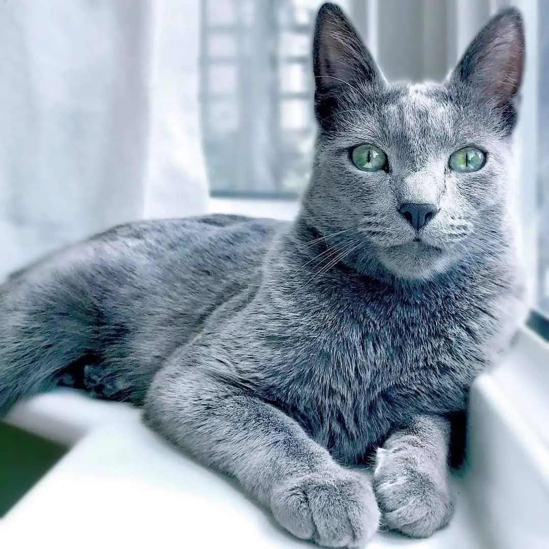 The Russian Blues often spend a significant portion of their day licking themselves, using their rough tongues to remove dirt, debris, and loose fur. This helps these cats to regulate their body temperature and distribute natural oils throughout their body.